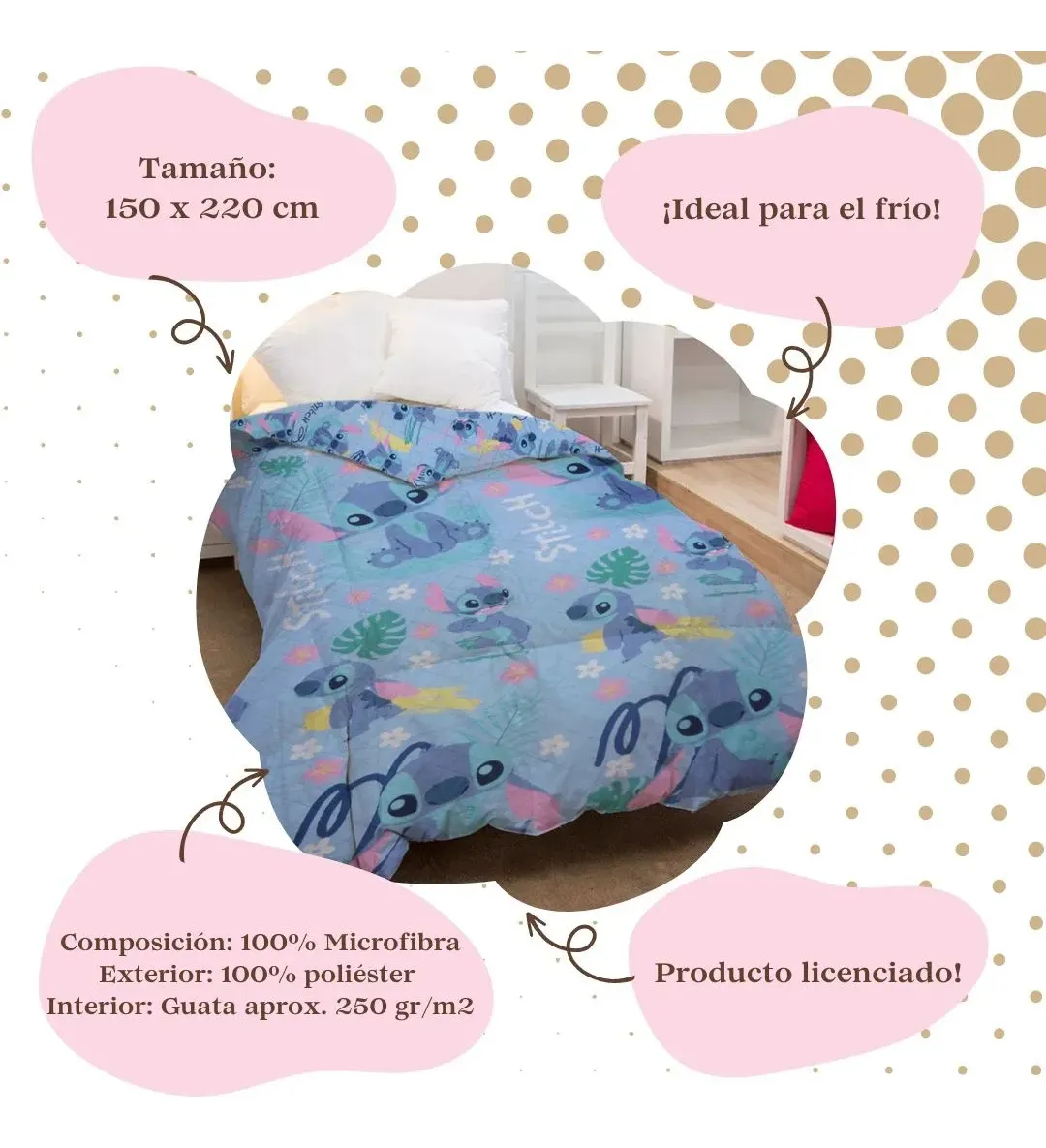 Acolchado 1 Plaza 150×220 Infantil Licenciado Oficial Disney