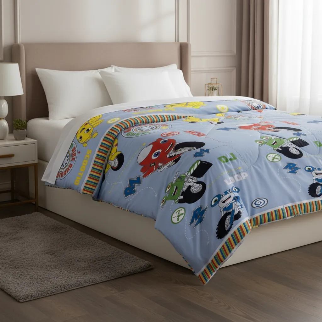 Este increíble acolchado mezcla la calidez, el abrigo y la suavidad de 100% Microfibra con divertidos diseños. ¡Ideal para el frío!
