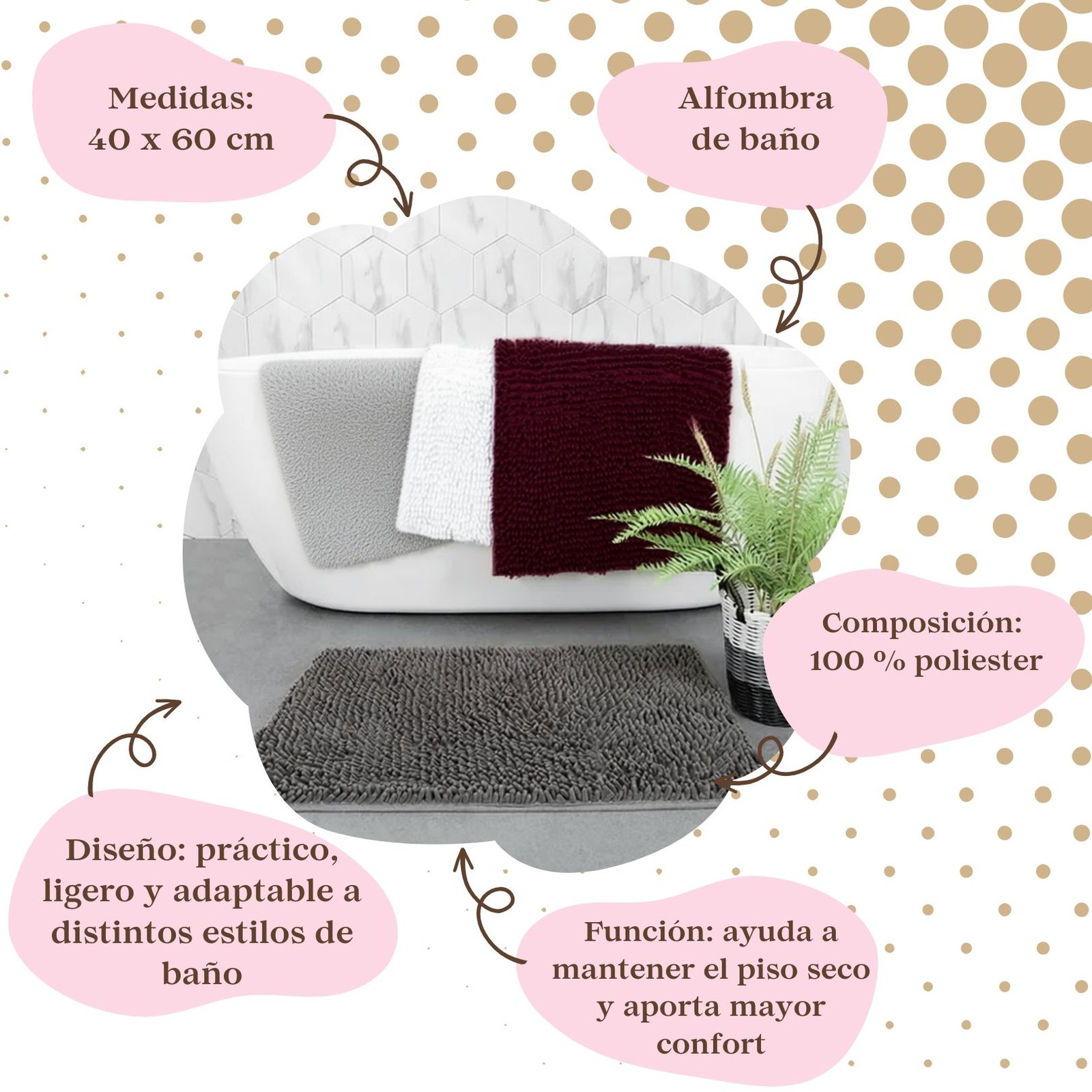 Funcionalidad que se adapta a tu día a día. La alfombra de baño de 100% poliéster es perfecta para sumar comodidad y seguridad a tu rutina. Su tamaño compacto la hace ideal para espacios pequeños, sin perder eficacia al salir de la ducha.