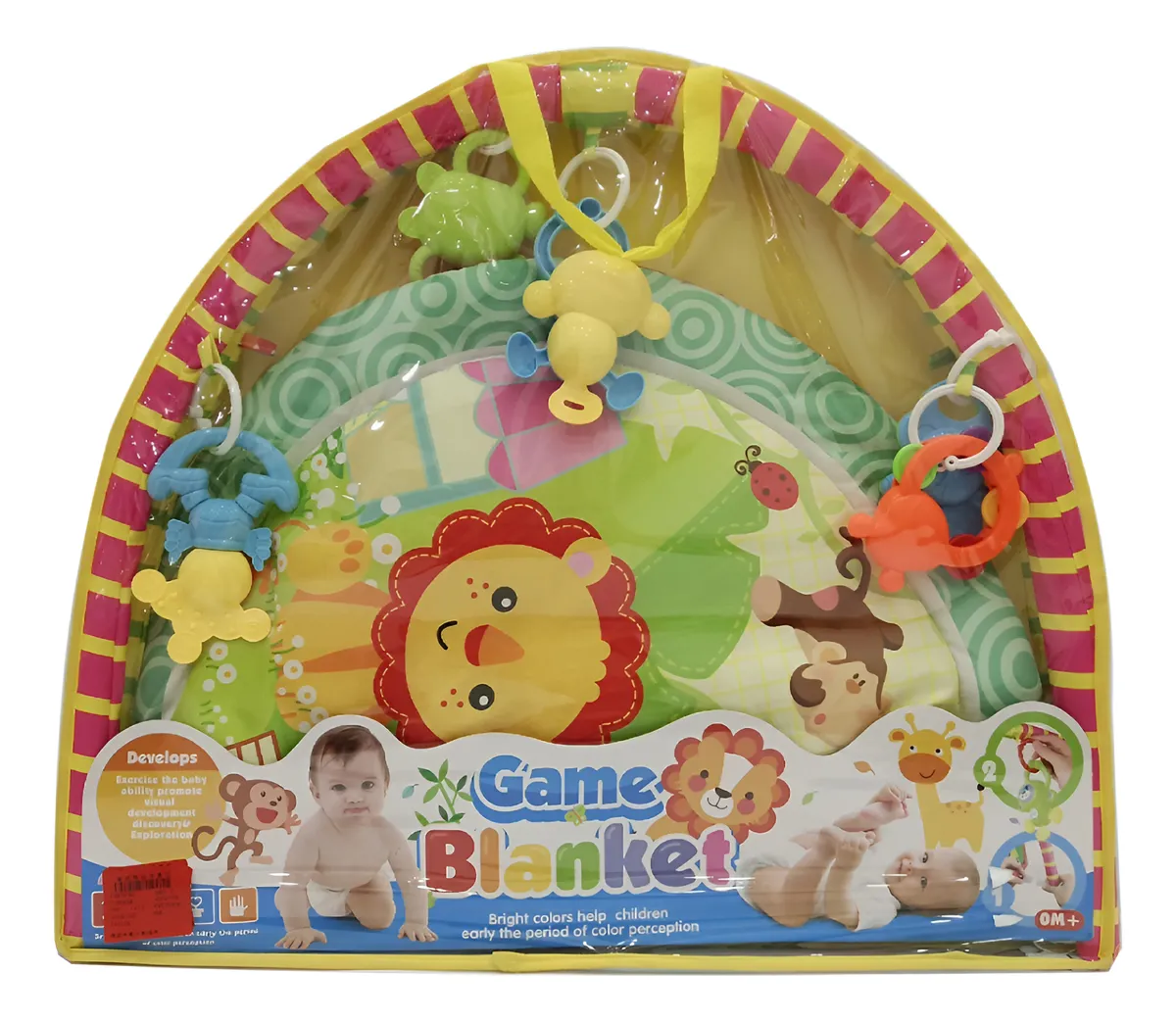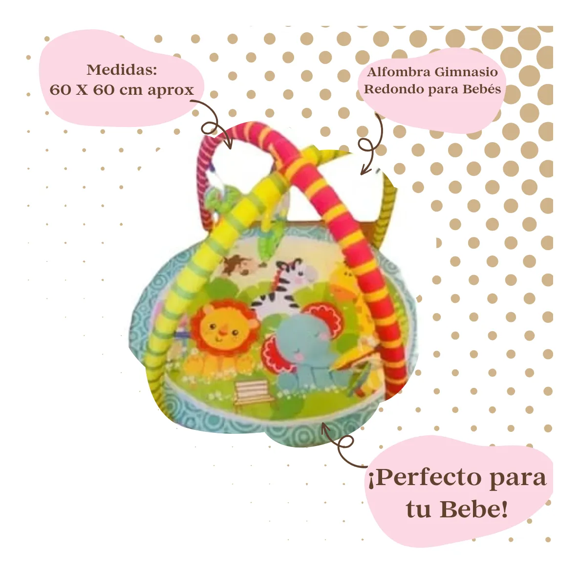 Es multifuncional ya que viene con un piano que se activa con las patadas y movimiento del bebé, viene con 5 sonajeros con diseños de animales desmontables, su barandal se ajusta en varios ángulos adaptándose al crecimiento del pequeño, la alfombra es suave y cómoda para horas de juegos interminables, confeccionada en 100% algodón suave y sin químicos tóxicos para cuidar las pieles sensibles del bebé y el piano es desmontable por lo que se puede usar toda la vida, utiliza 2 pilas AA, ni vienen incluidas.