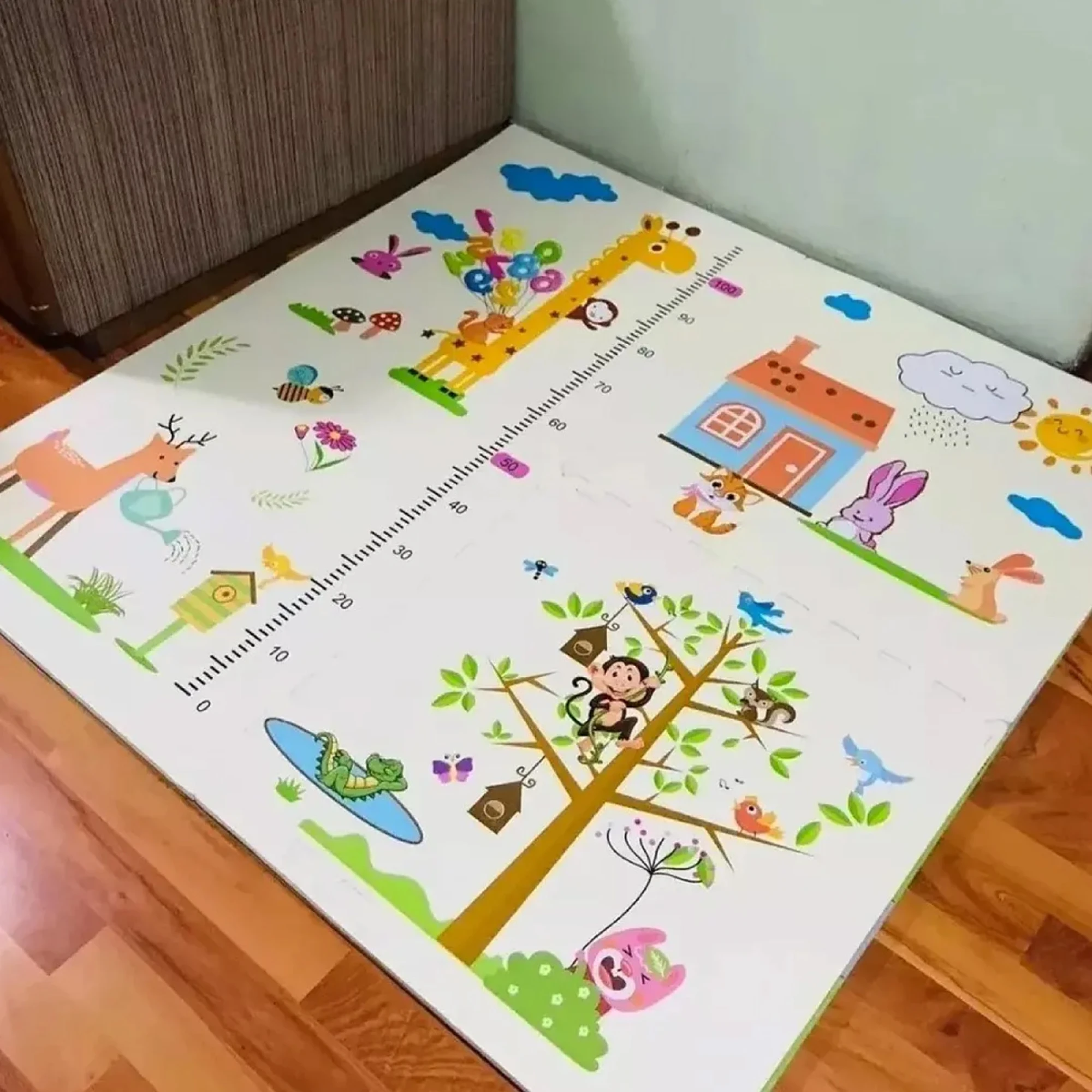 Con diseño de animales e incluye una regla para medir la altura.