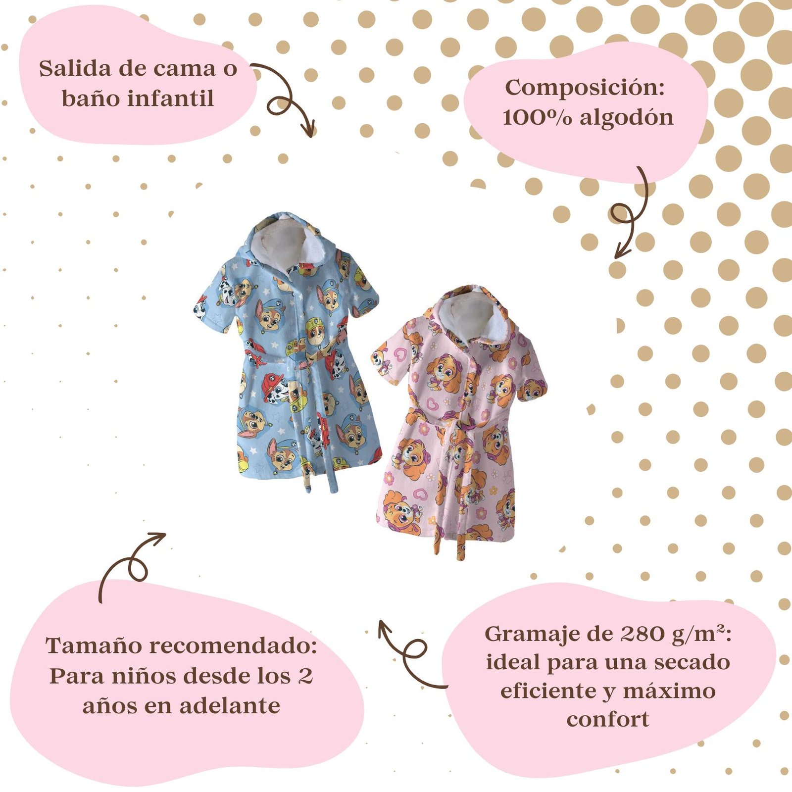 Bata para Bebé Patrulla Canina – Döhler ¡Aventuras cómodas después del baño para tu pequeño héroe! Envuelve a tu bebé en momentos de ternura y fantasía con esta bata oficial de Patrulla Canina. Diseñada para niños a partir de 2 años, es perfecta para que la diversión continúe incluso después de salir del agua.