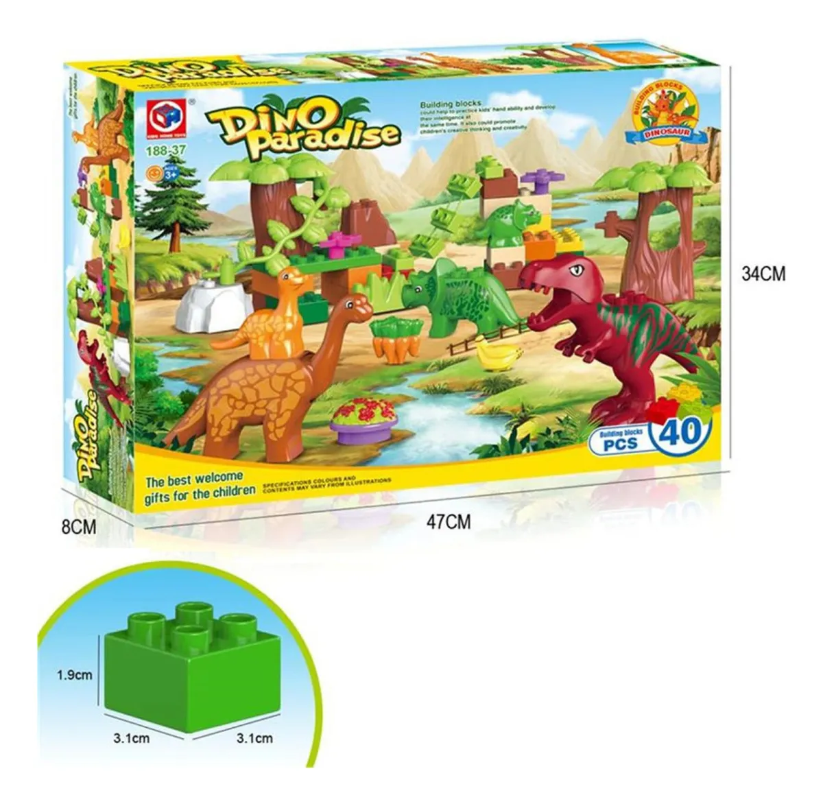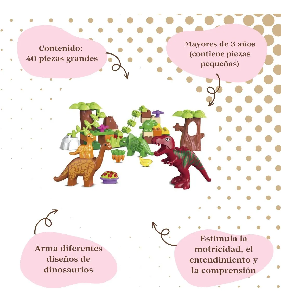 Bloques Didático 40 Piezas Dinosaurio Infantil Mayores 3 Año
