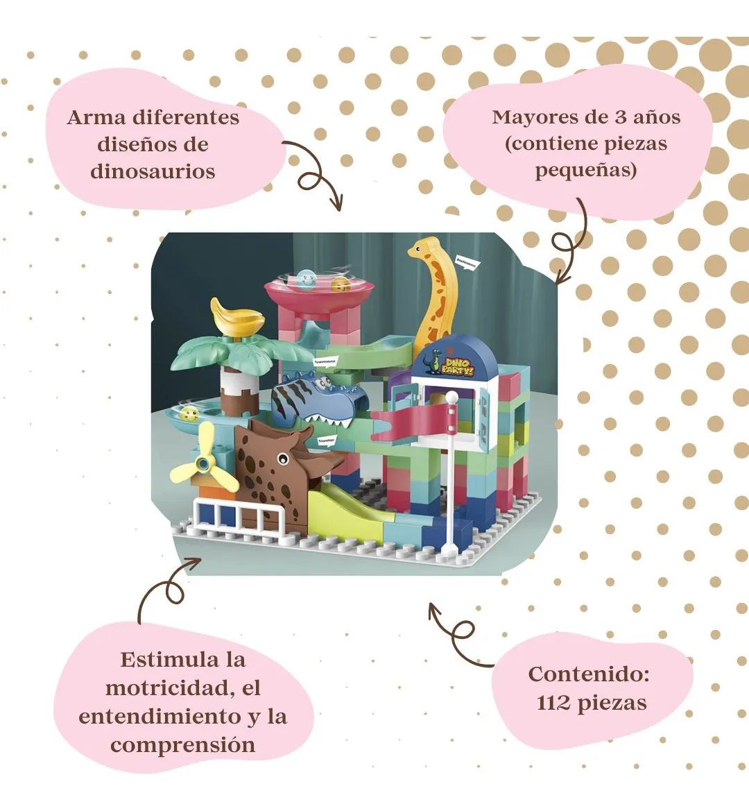 Este set contiene 112 piezas que permiten a los pequeños armar diferentes diseños de dinosaurios y liberar su imaginación. Ideal para desarrollar la función motora, este juego estimula la motricidad, el entendimiento y la comprensión a temprana edad, favoreciendo al desarrollo integral de los niños.