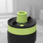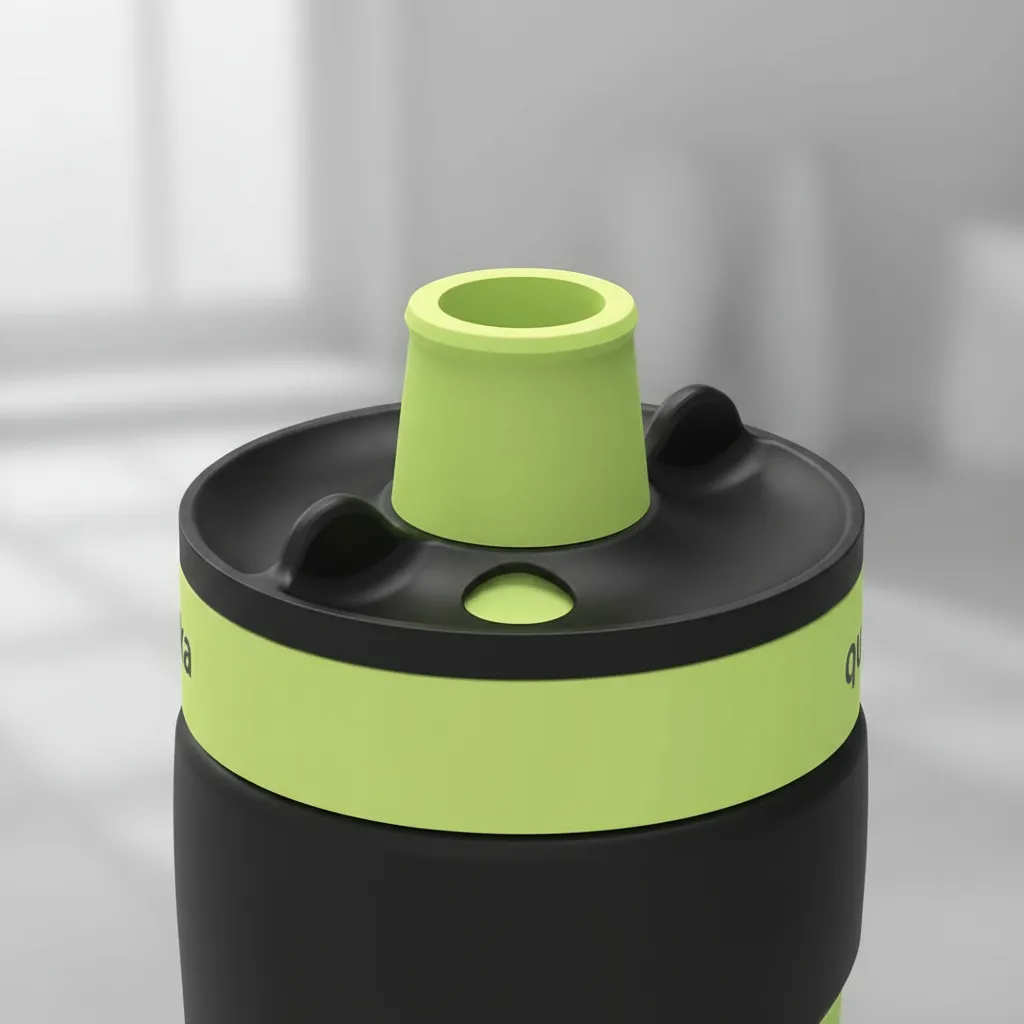 Botella para ejercicio flexible. Está compuesta por LDPE, lo cual genera que tenga una alta resistencia a roturas y que sea ligera. Cuenta con un agarre ergonómico antideslizante de silicona y una boca de silicona con antigoteo.