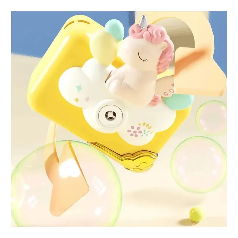Burbujero a Pila con Forma de Cámara y Diseño de Unicornio: Este encantador burbujero no solo crea burbujas mágicas, sino que también tiene un adorable diseño de unicornio. Diseño surtido.