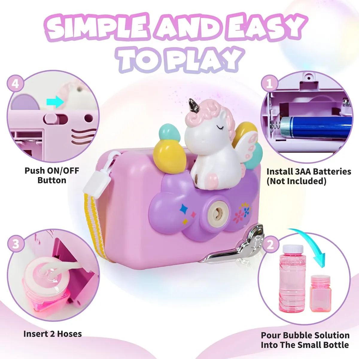 ¡Magia en cada burbuja con nuestro Burbujero a Pila con Forma de Cámara y Diseño de Unicornio!
