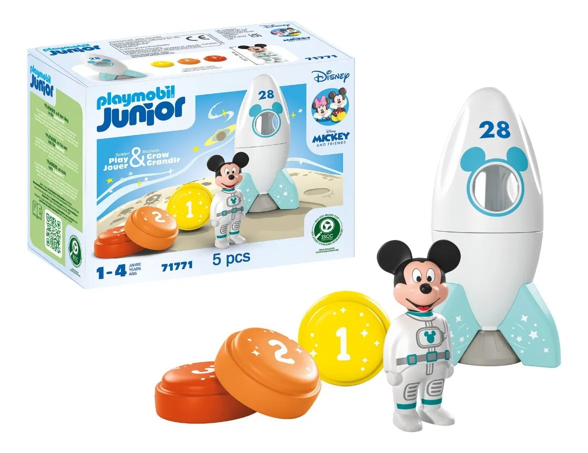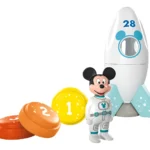 DESCRIPCIÓN – Este set inspirado en Disney fomenta el aprendizaje de números y coordinación mientras el ratón se sitúa en el cohete para mirar por la ventana.
