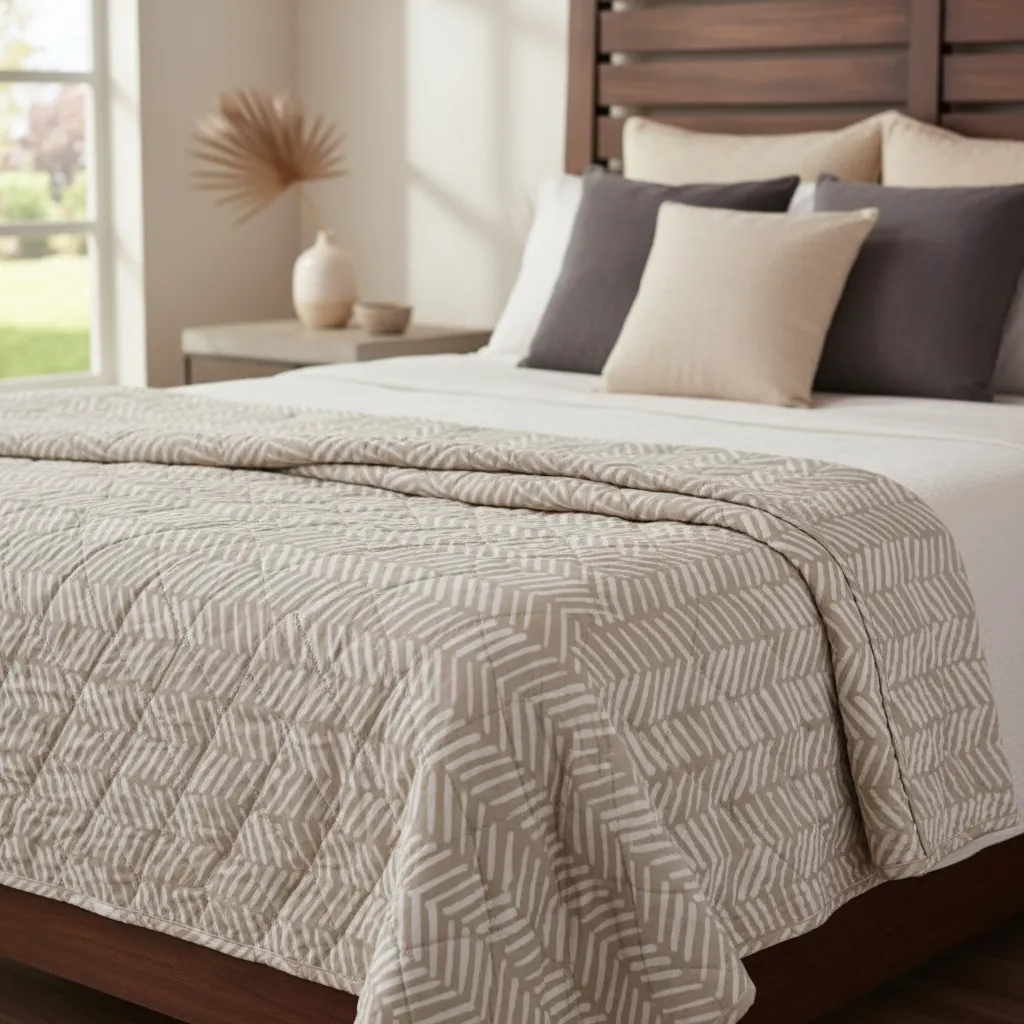 Además, es reversible, lo que permite cambiar el estilo de tu cama con un simple giro, ofreciendo versatilidad en la decoración.