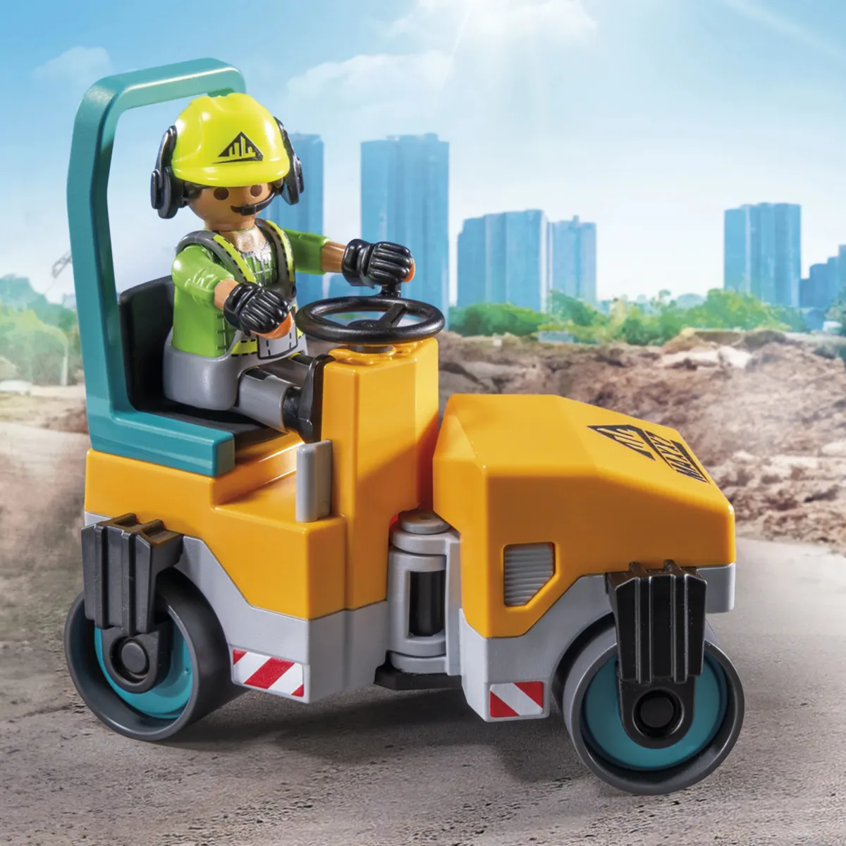Construcción de carretera con los accesorios para pavimentar fabricado por Playmobil, el juego ideal para todo momento con la temática preferida de los más chicos.