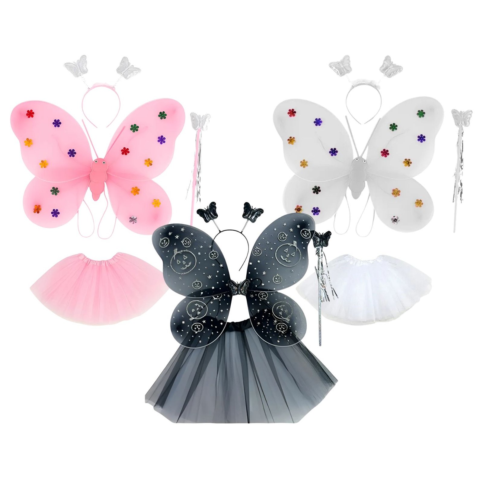 Disfraz De Alitas De Organza Mariposa Tiara Varita Halloween