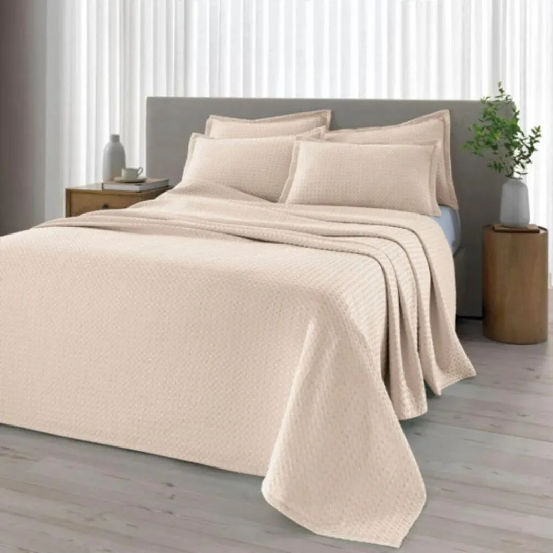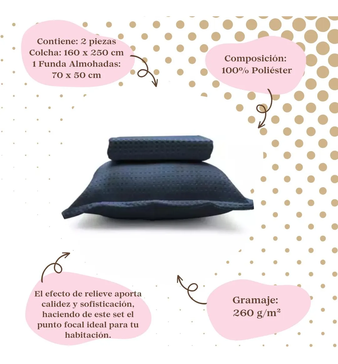 El efecto de relieve aporta calidez y sofisticación, haciendo de este set el punto focal ideal para tu habitación.
