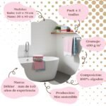 Ambas confeccionadas en 100% algodón, con un gramaje de 400 gr, lo que garantiza una excelente absorción, suavidad y resistencia.