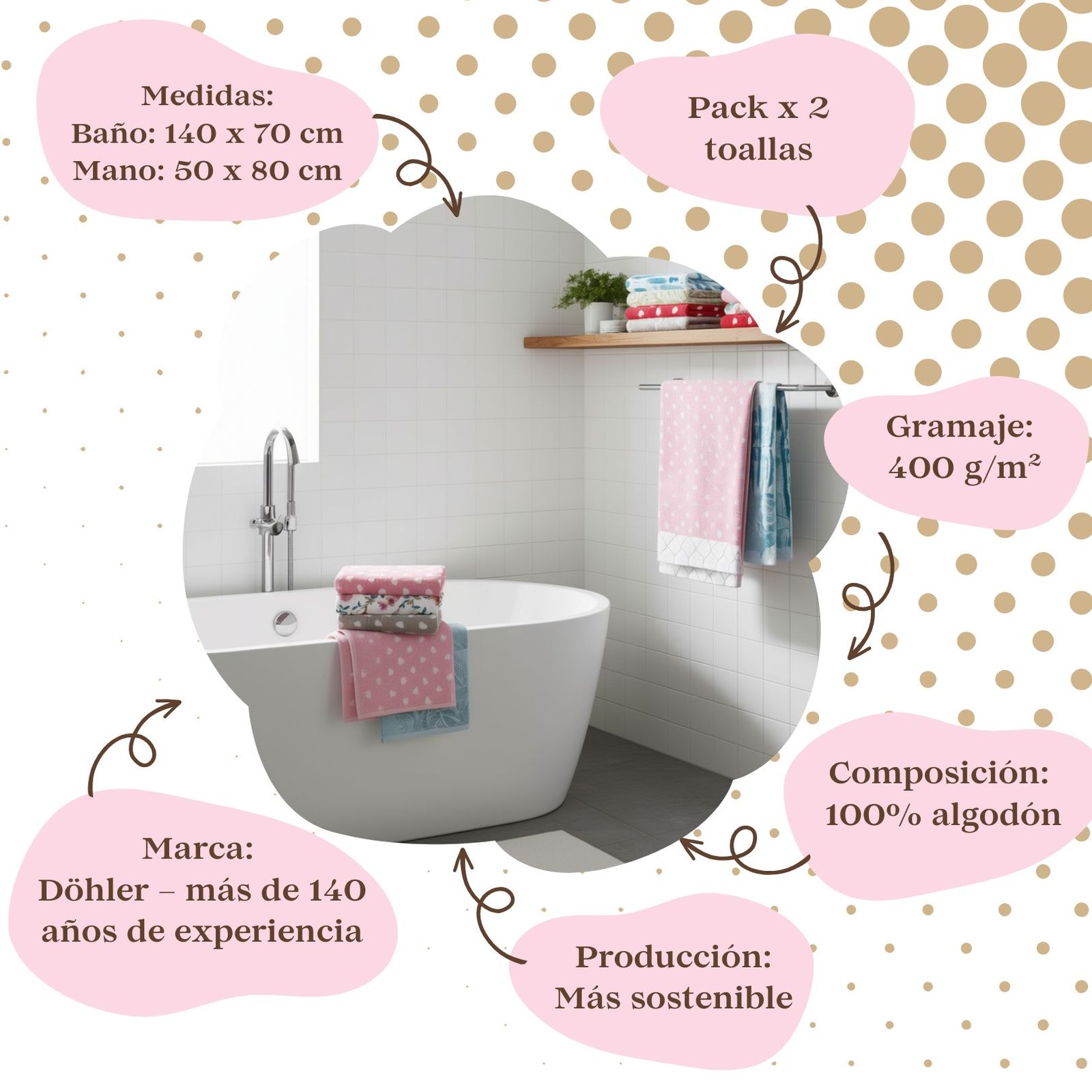 Set de toallas estampadas Döhler – Combiná tu baño con estilo y calidad