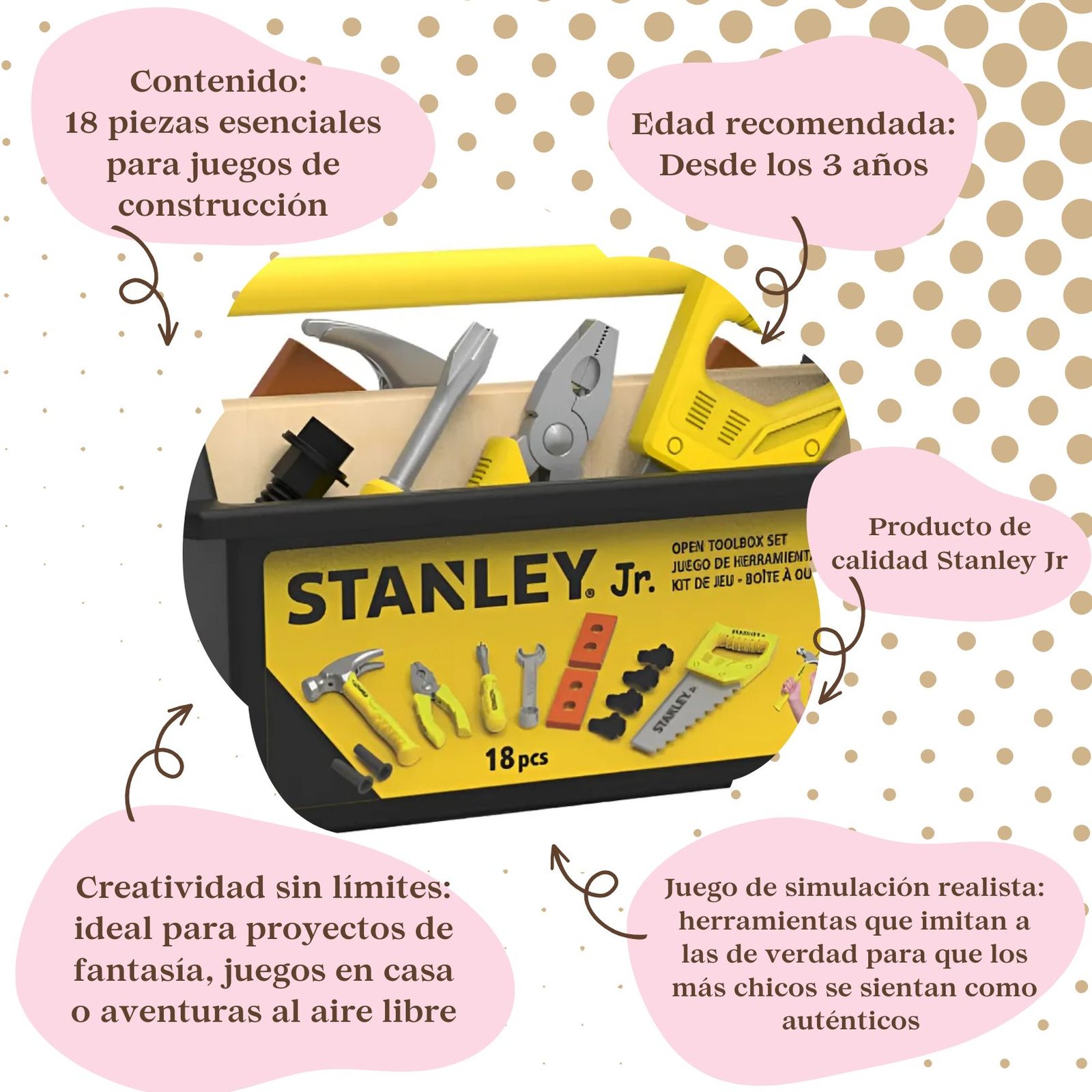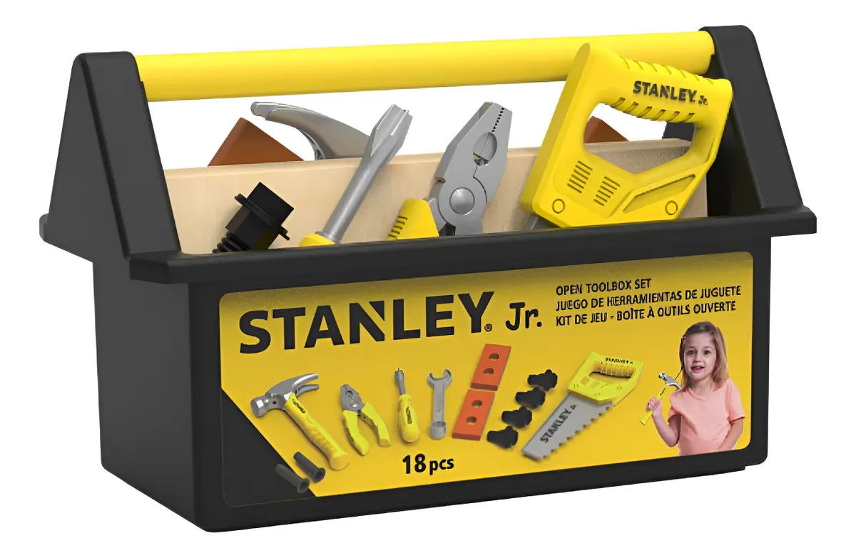 STANLEY Jr. Caja de Herramientas de Juguete (18 piezas) — ¡Imaginación en acción para futuros creadores!