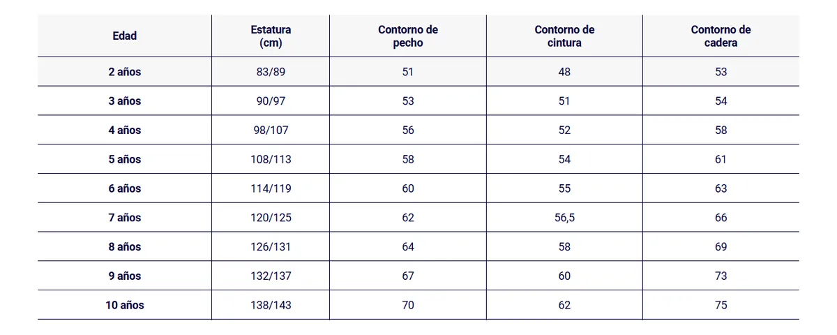 Viene en 3 talles disponibles 2/3 – 4/5 – 6/7.