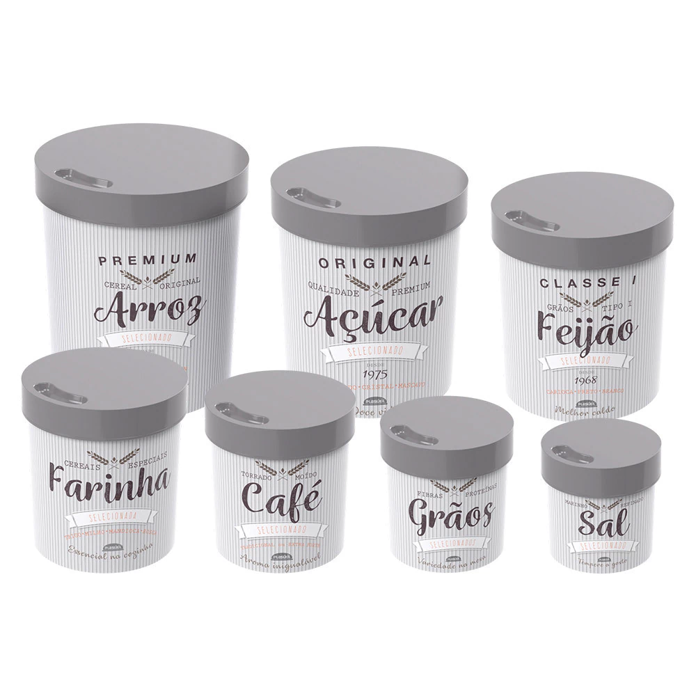 Mantén tu despensa siempre ordenada y práctica con este pack de recipientes que se adaptan a cada tipo de alimento. Su diseño único con nombres impresos en cada pote facilita la organización y aporta un toque decorativo retro en tonos grises.