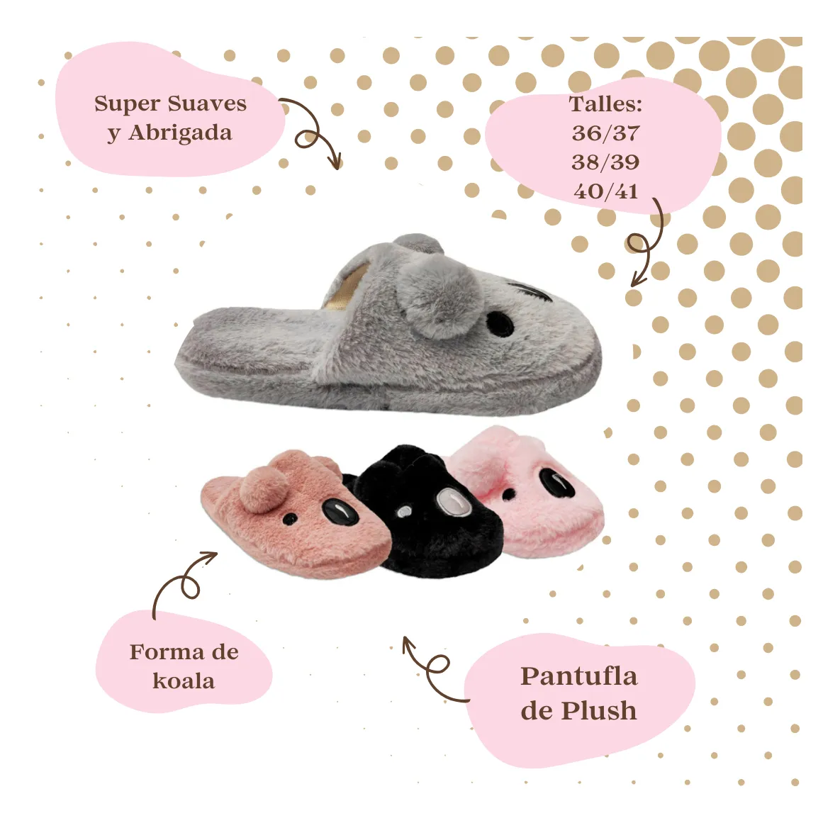 Pantuflas Plush Forma Koala Adulto 36 A 41