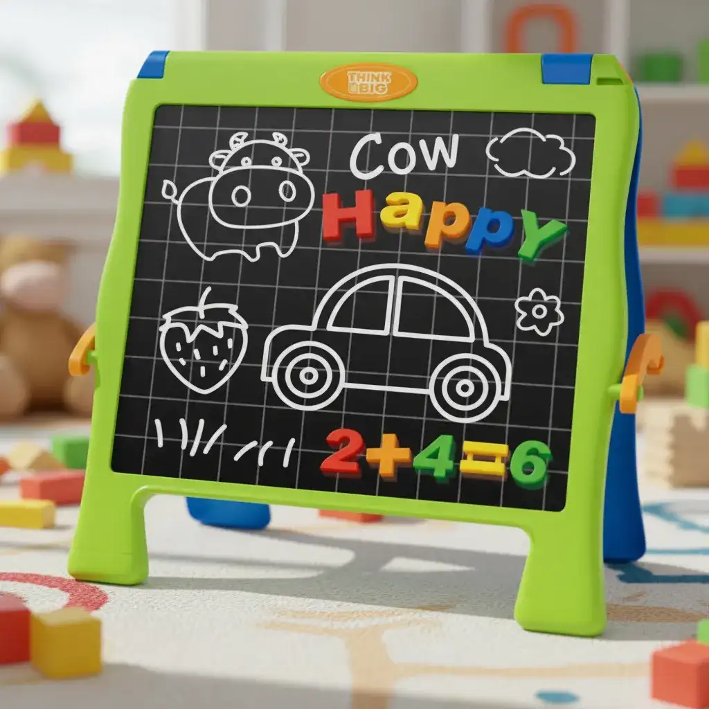Pizarra Imán con Marcador: Este set educativo incluye 82 piezas – 52 letras magnéticas, 20 números magnéticos, 6 símbolos magnéticos, un marcador, un borrador y 2 tizas. ¡Todo lo que los pequeños necesitan para aprender de manera divertida!