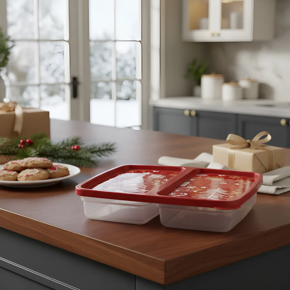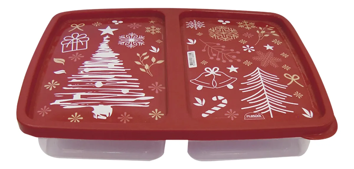 Recipiente 1,1 Litro Con 2 Divisiones Rectangular Navidad