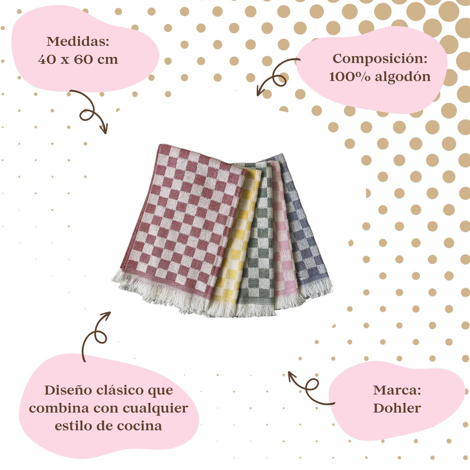 Repasador cocina Dohler Ajedrez 40 x 60 cm 100% algodón