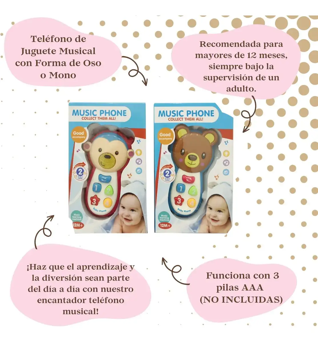 ¡Haz que el aprendizaje y la diversión sean parte del día a día con nuestro encantador teléfono musical!