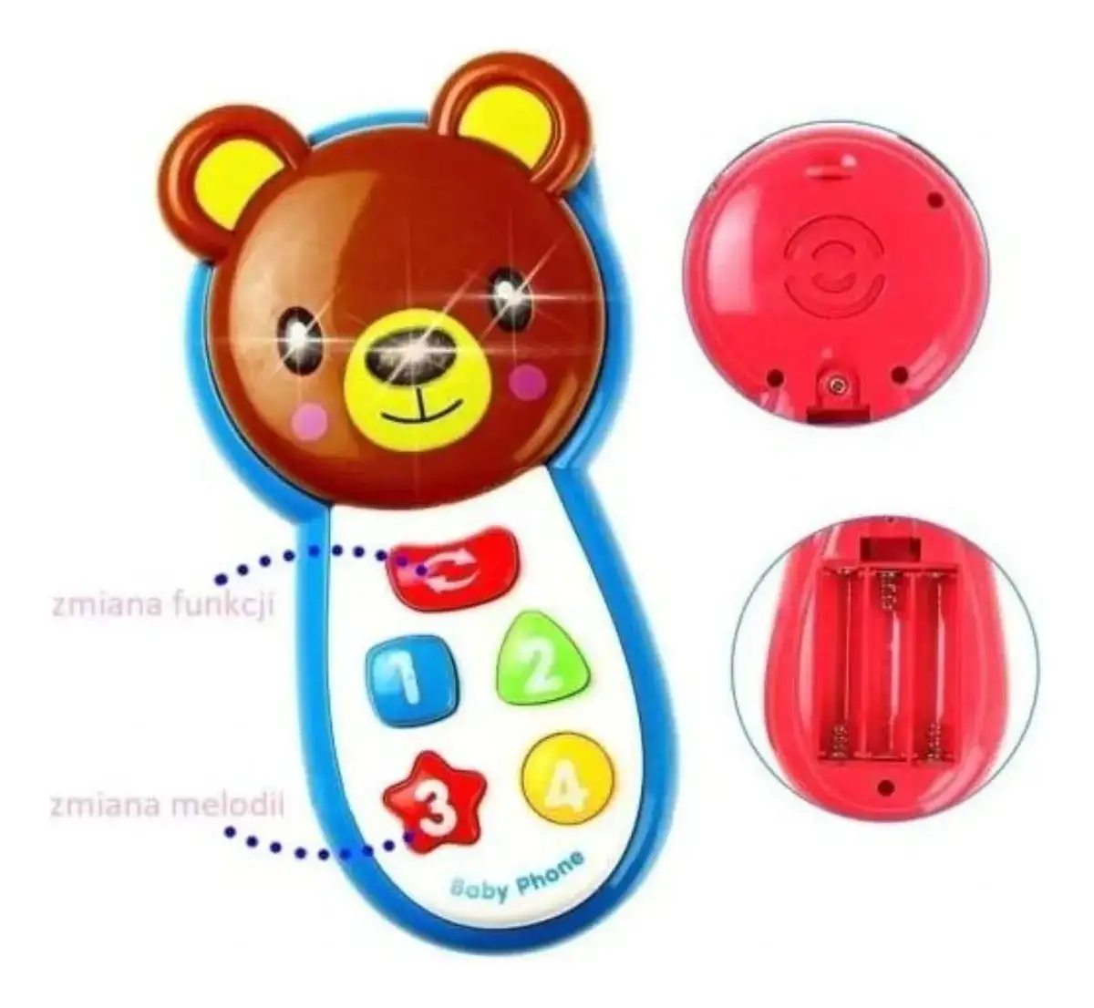 Teléfono de Juguete Musical con Forma de Oso: Con botones coloridos y música llamativa, este juguete es ideal para la estimulación sensorial de los más pequeños. ¡Una experiencia sonora y visual que los hará sonreír!