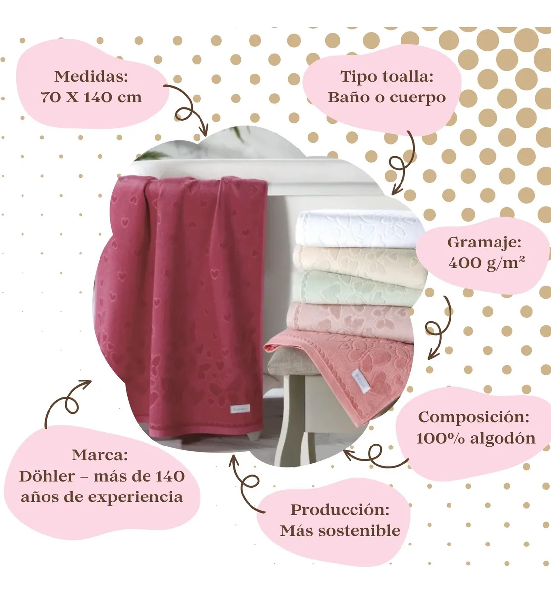 Toalla Baño Dohler Romance 70 X 140 Cm 100% Algodón