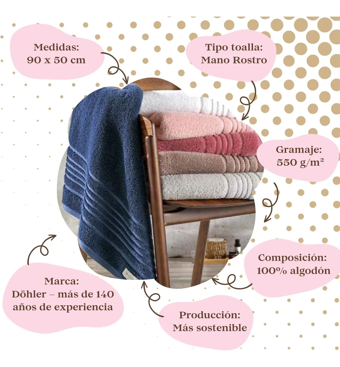 Toalla Rostro Mano 90x 50 Dohler Rubi Jacquard Algodón Egipcio
