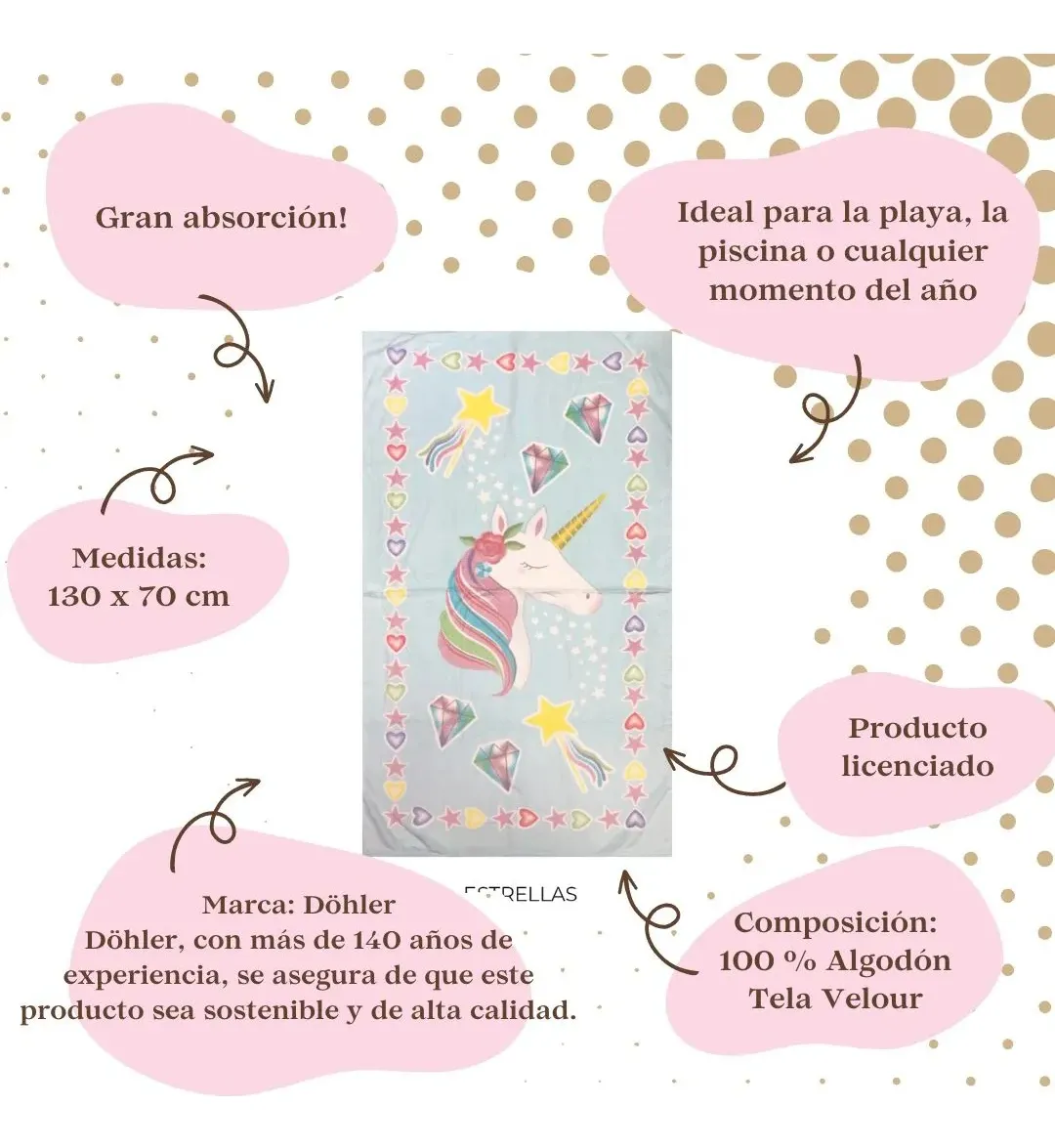 Toalla / Toallón Unicornio Playero Playa 130×70 Oficial