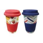 Disfruta de tus bebidas calientes o frías con esta práctica taza de cerámica con tapa y protector de Goma Eva. Ideal para llevar a cualquier lugar, su boquilla en la tapa permite beber cómodamente sin derrames.