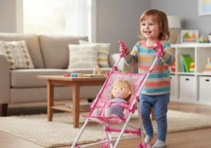 Cochecito Para Muñecas 1 Asiento 4 Ruedas Juguete Rosa